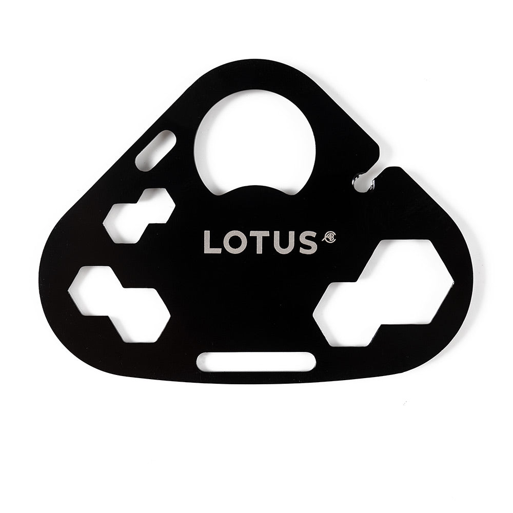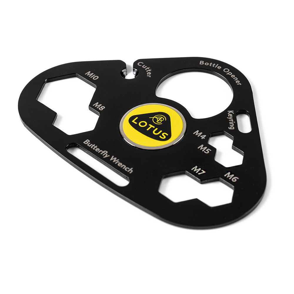 Lotus Multi-tool with 10 functions, laser engraved detail, made in stainless steel. Comes in a presentation micro-fibre bag.